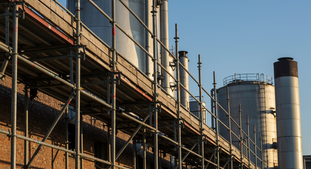 Specialised scaffolding designed for industrial facilities, factories, and plants.